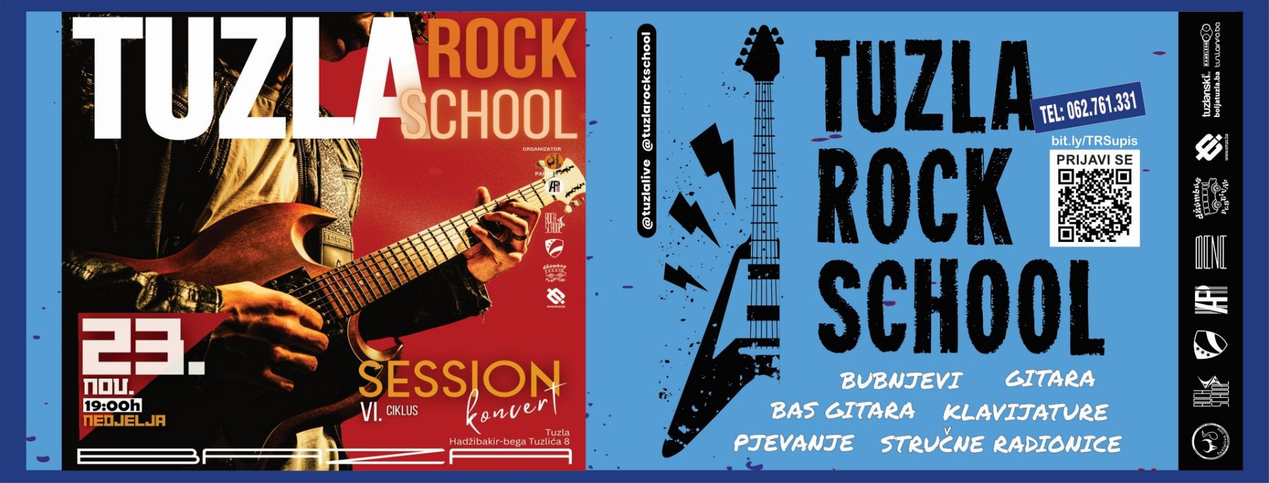 Udruženja “Tuzla Live”, zajedno sa saradnicima Udruženjem “Alternativna Produkcija” i klubom “Baza“, objavljuje početak upisa u zimski ciklus “Tuzla Rock School” tj. jedinstven edukativni program za sve zainteresovane polaznike.